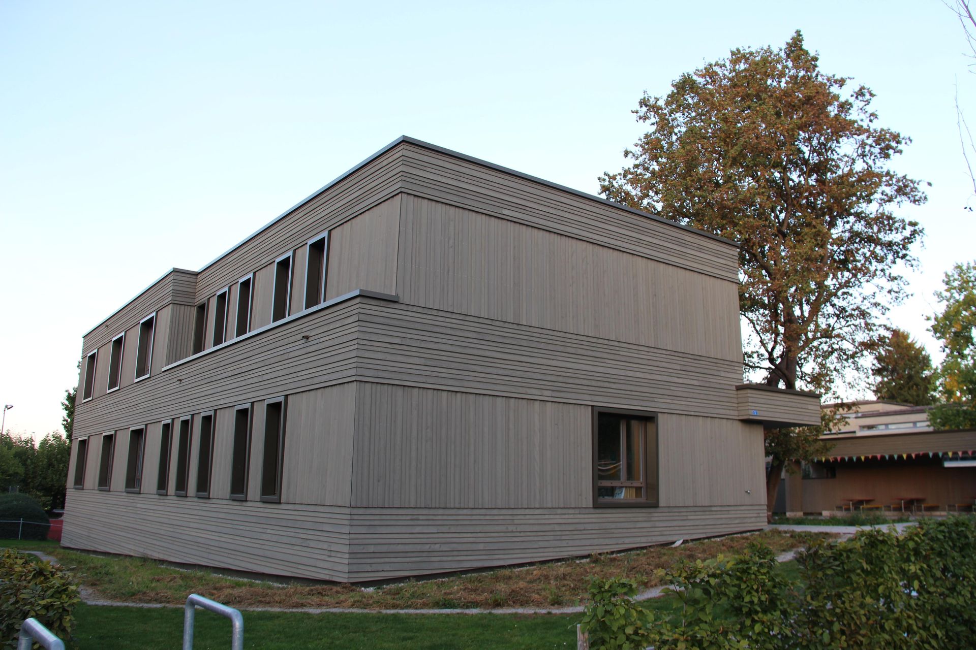 Reiner Holzbau, Holz-Metall-Fenster, Minergie mit Erdsonden-Wärmepumpe, Komfortlüftung
